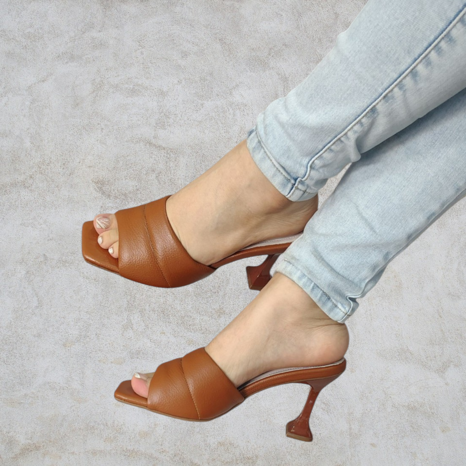 Diseño de Tacón: Tacón tipo campana (arquitectónico), que ofrece una base de apoyo más amplia que un tacón aguja tradicional, brindando mayor seguridad al caminar.